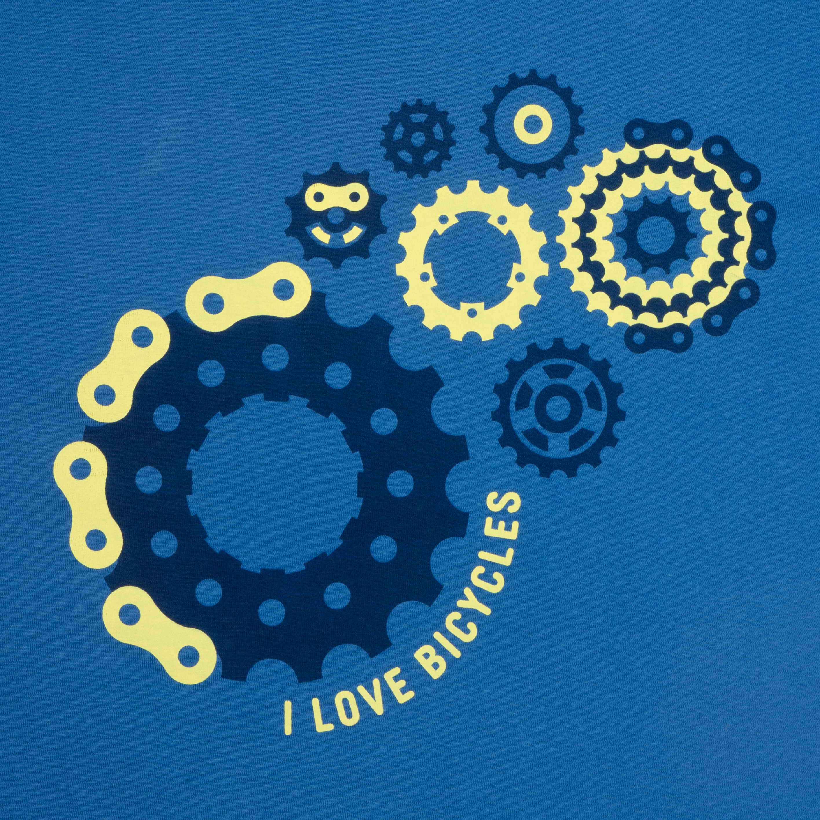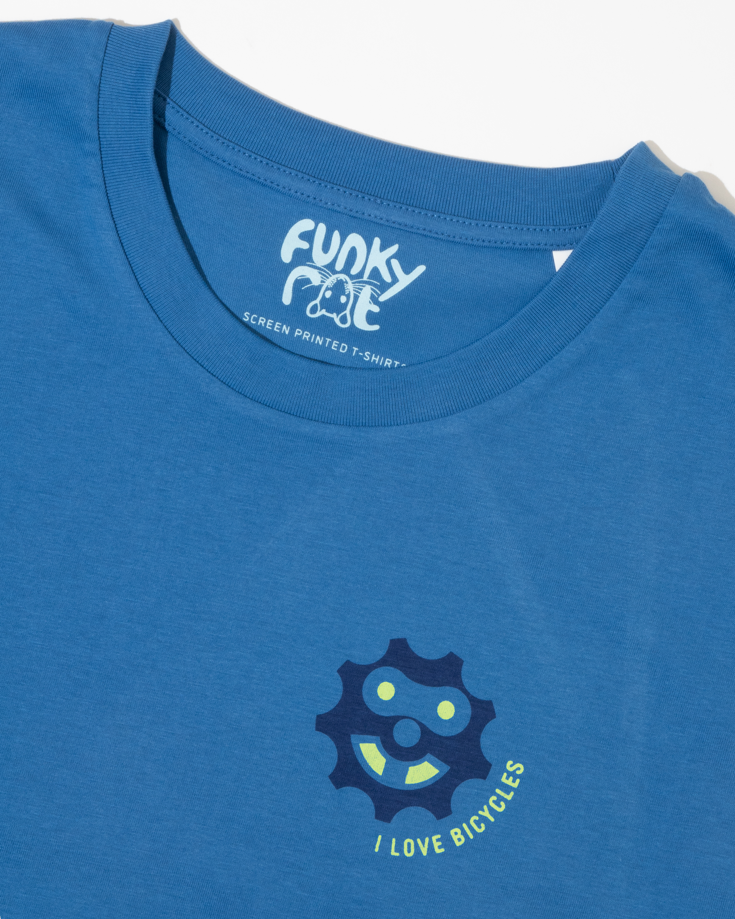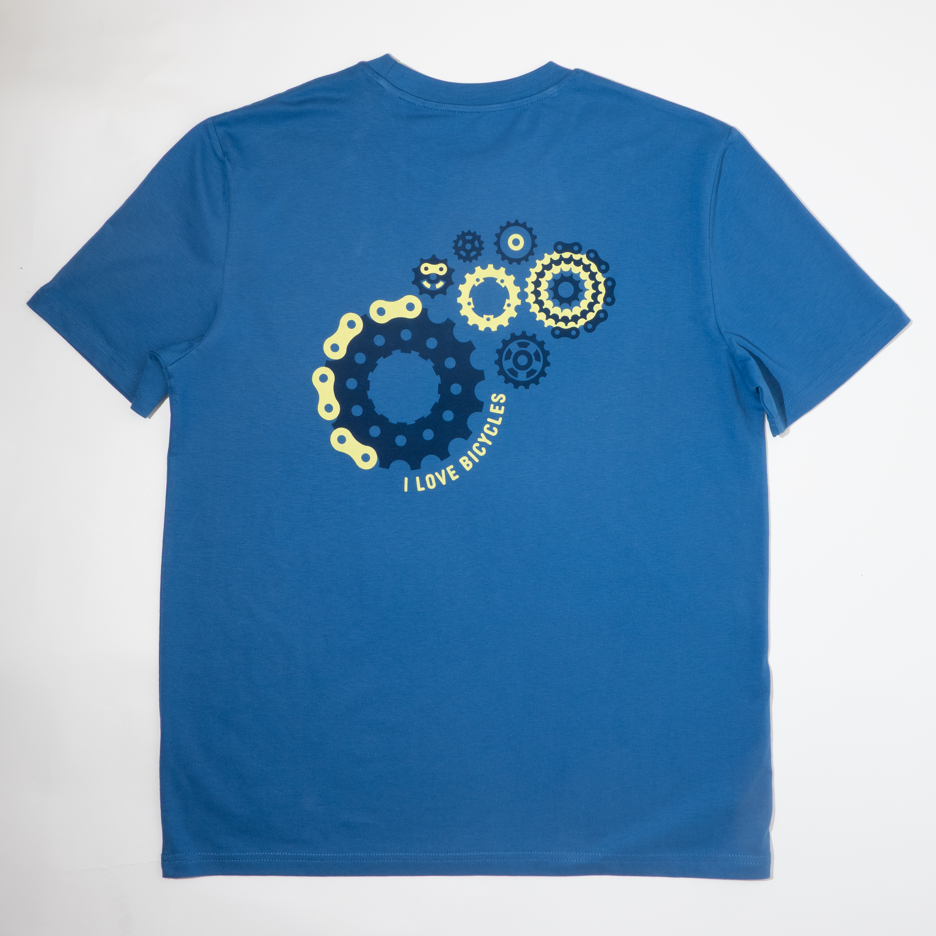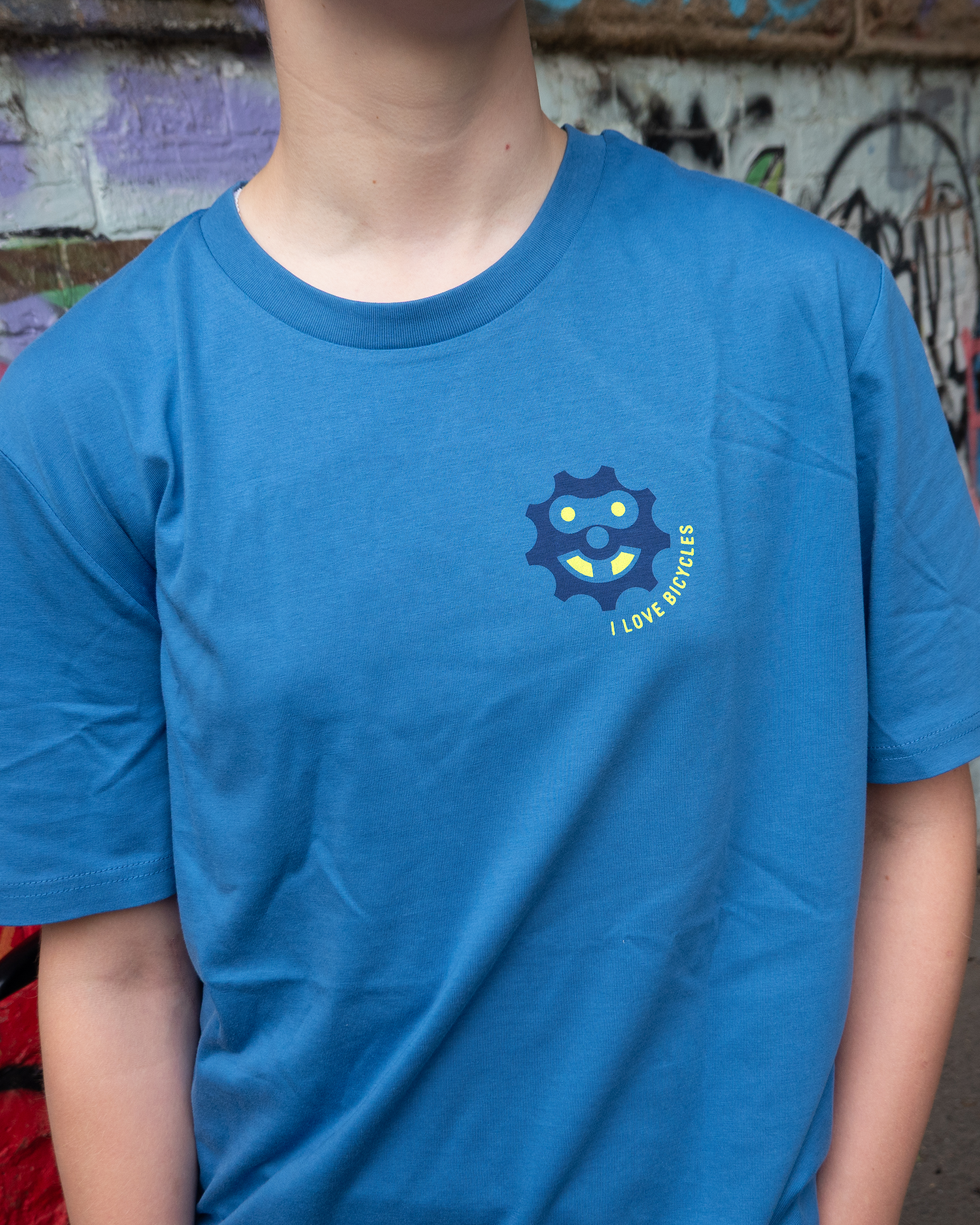 This cotton t-shirt if perfect off-bike cycle wear or for casual trips and commutes around town. The front has a small smiling cog print and the back has a large cog and chain design.